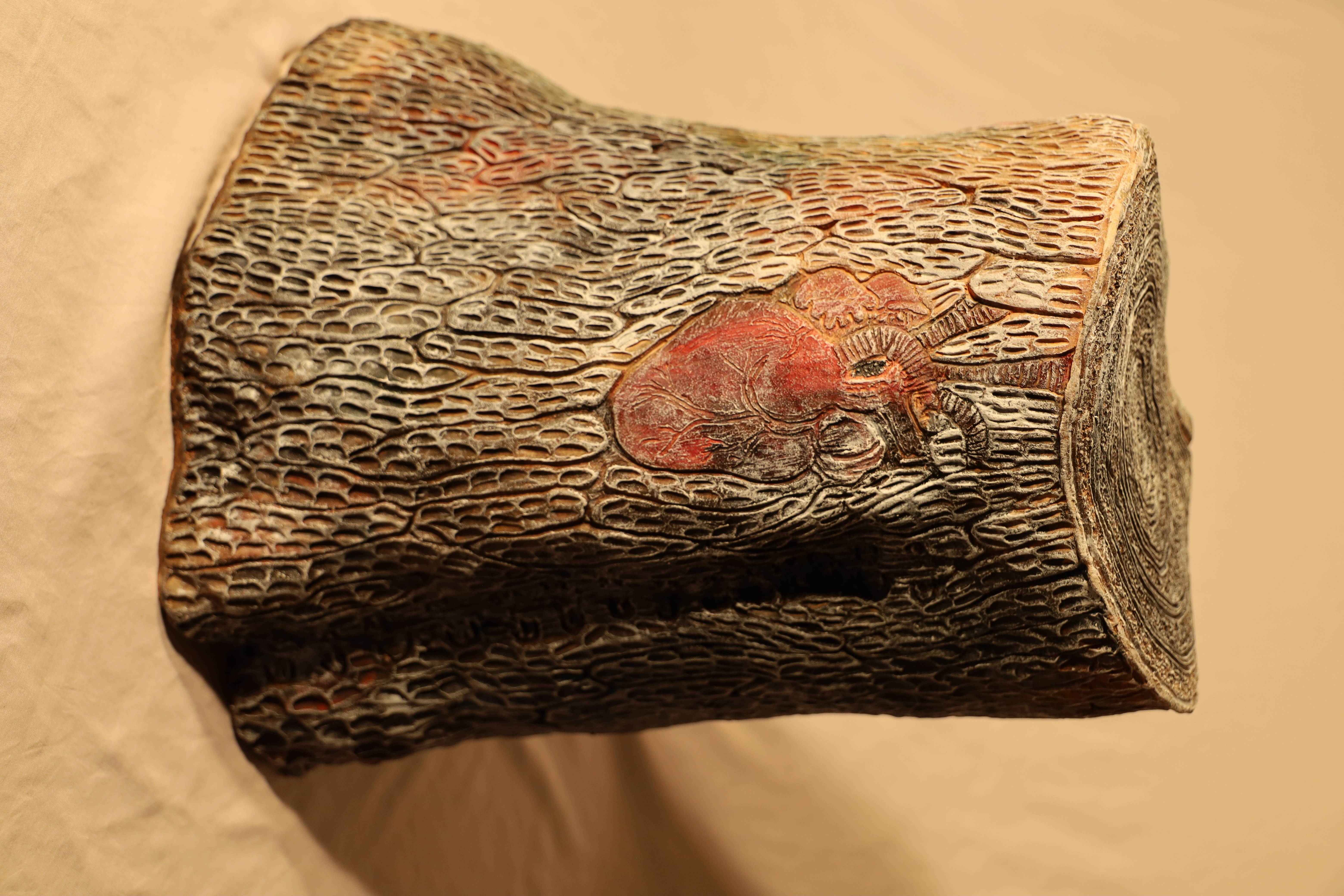 Dayna Ball, Growth, High Fire Death Valley Clay, Acrylic Paint, 16 x 16 x 10 inches, 2022 - 02 Growth discusses the beginning of human life in this most vulnerable in utero stage. Growth discusses how all organisms experience life stages, how intraorganistically, or across species, life is still life. In the case of the human species, life definitively begins at conception, but currently a huge portion of scientific misinformation runs amok. The pro-abortion argument is really not an argument of when human life begins, but rather when it is protected and valued. It is surely alarming how so many individuals are willing to deny science in order to justify actions they wish. While this piece nods to barbaric modern killing practices in utero, Growth really discusses the beginnings of life for us all.