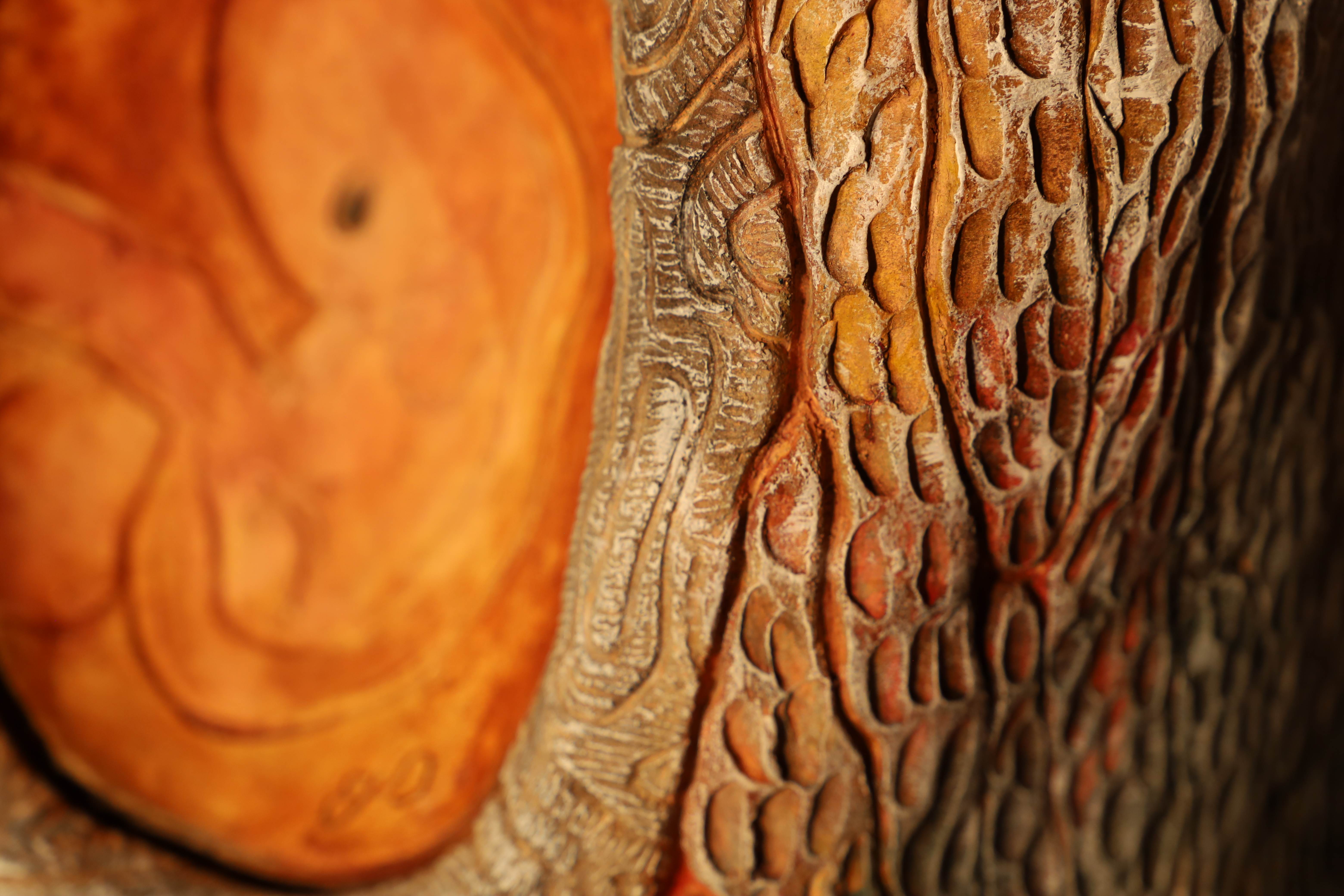 Dayna Ball, Growth, High Fire Death Valley Clay, Acrylic Paint, 16 x 16 x 10 inches, 2022 - 06 Growth discusses the beginning of human life in this most vulnerable in utero stage. Growth discusses how all organisms experience life stages, how intraorganistically, or across species, life is still life. In the case of the human species, life definitively begins at conception, but currently a huge portion of scientific misinformation runs amok. The pro-abortion argument is really not an argument of when human life begins, but rather when it is protected and valued. It is surely alarming how so many individuals are willing to deny science in order to justify actions they wish. While this piece nods to barbaric modern killing practices in utero, Growth really discusses the beginnings of life for us all.