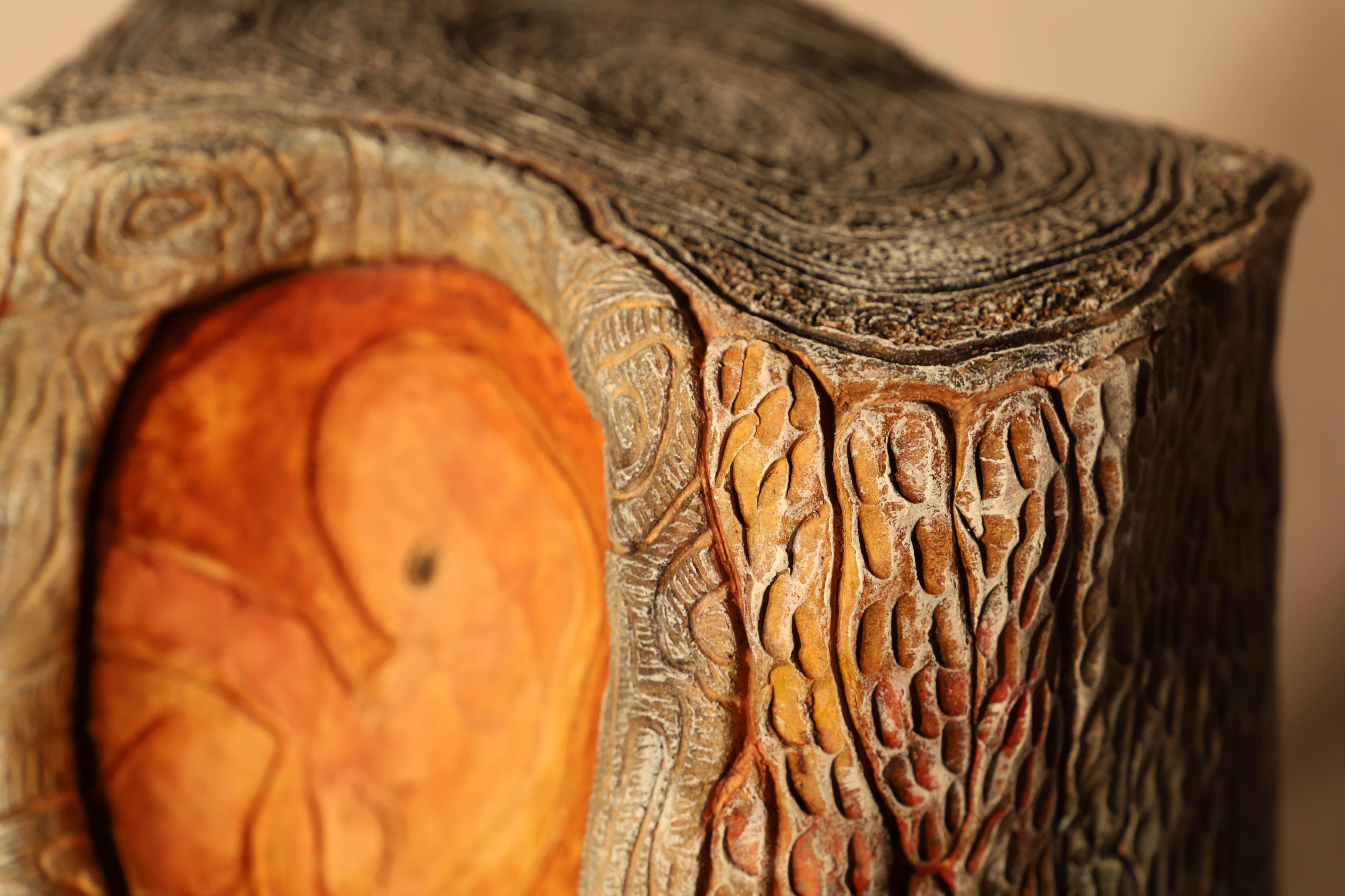 Dayna Ball, Growth, High Fire Death Valley Clay, Acrylic Paint, 16 x 16 x 10 inches, 2022 - 07 Growth discusses the beginning of human life in this most vulnerable in utero stage. Growth discusses how all organisms experience life stages, how intraorganistically, or across species, life is still life. In the case of the human species, life definitively begins at conception, but currently a huge portion of scientific misinformation runs amok. The pro-abortion argument is really not an argument of when human life begins, but rather when it is protected and valued. It is surely alarming how so many individuals are willing to deny science in order to justify actions they wish. While this piece nods to barbaric modern killing practices in utero, Growth really discusses the beginnings of life for us all.